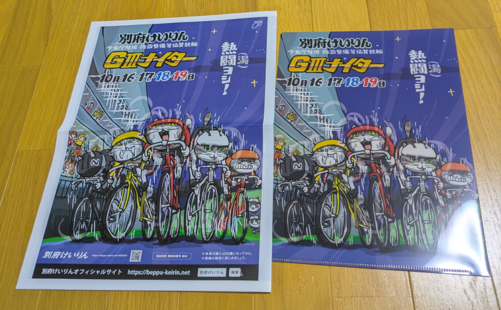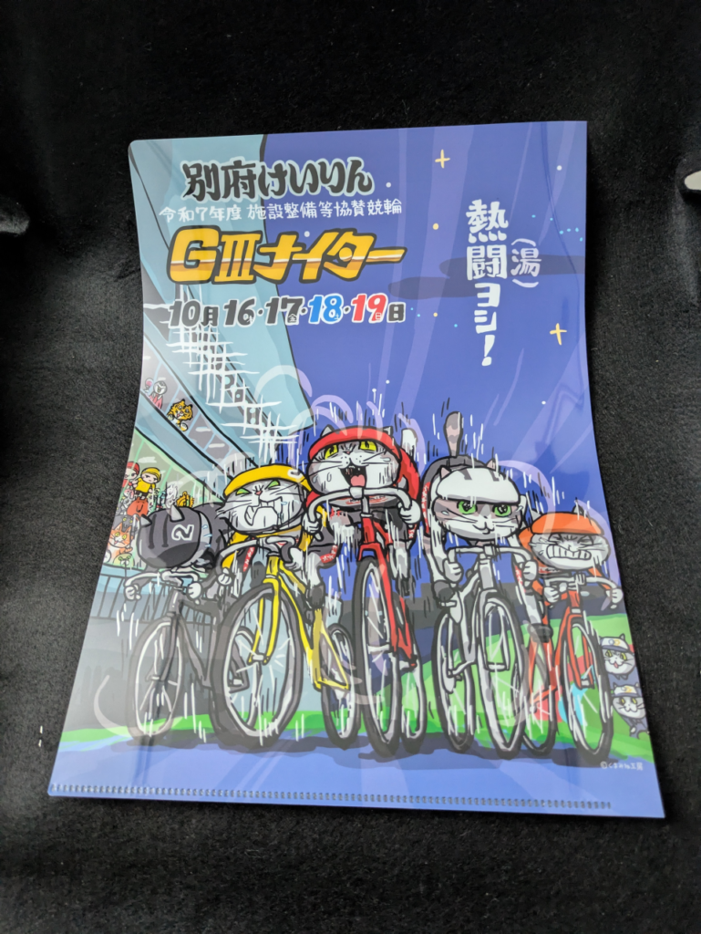 届いたクリアファイルには、別府競輪G3ナイターのイラストが描かれていました。