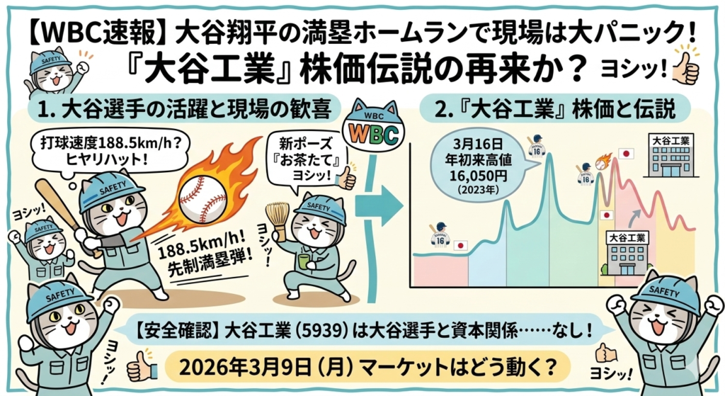 なぜ大谷工業がここまで話題になるのか。それは、前回2023年のWBC大会で起きた「伝説の株価爆騰」というヒヤリハット事例があるからです。